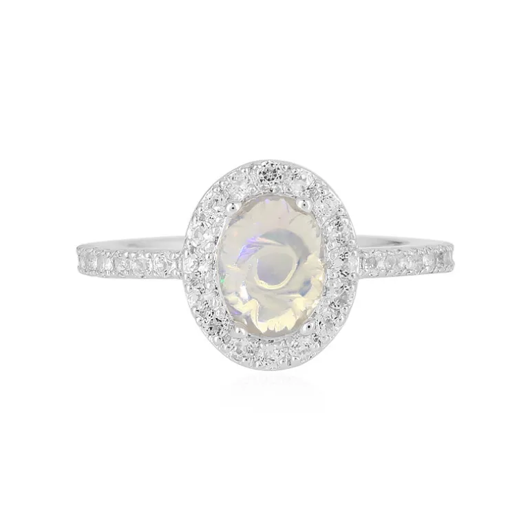 Schicker äthiopischer Welo Opal & Weißer Topas Silber Ring, 1,22ct