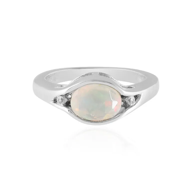 Ätherischer äthiopischer Welo Opal & Zirkon Silber Ring, 0,702 ct