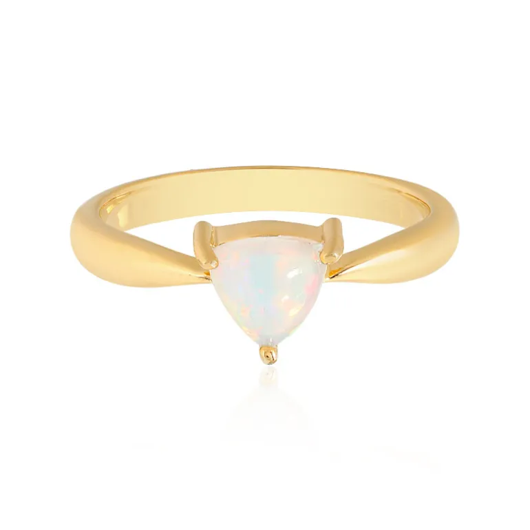 Entdecken Sie die schillernde Anziehungskraft dieses äthiopischen Welo-Opal-Rings, der einen Stein von 0,432 ct im Cabochon-Schliff präsentiert. Das Farbenspiel des Opals wird elegant von vergoldetem 925er Sterling Silber umrahmt und wiegt etwa 1,83 g. Der Opal ist perfekt, um jedem Outfit einen Hauch von Eleganz zu verleihen. Sein einzigartiger Glanz macht ihn zu einem außergewöhnlichen Schmuckstück für besondere Anlässe oder für den Alltag.