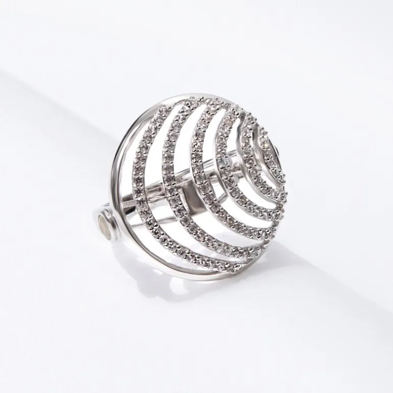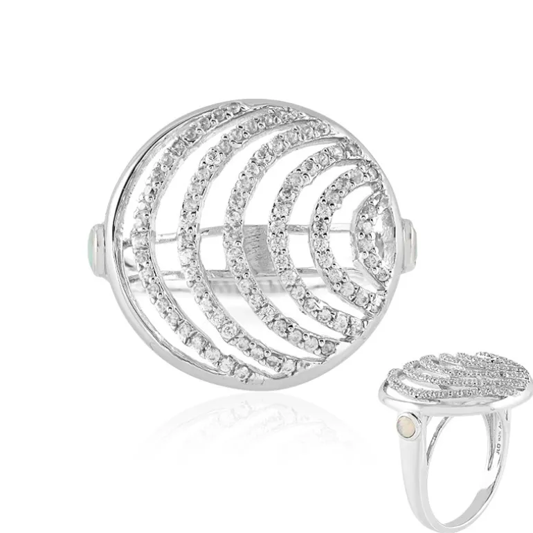 Entdecken Sie die Faszination dieses schicken äthiopischen Welo-Opal-Rings, der mit Präzision aus platiniertem 925er Sterlingsilber gefertigt wurde. Der Ring präsentiert zwei äthiopische Welo-Opale im Rundschliff mit einem Gesamtgewicht von 0,137 Karat, eingebettet in ein schimmerndes Meer von 95 kambodschanischen Zirkonsteinen im Rundschliff mit einem Gesamtgewicht von 1,108 Karat. Mit einem beeindruckenden Gesamtgewicht von 1,245 Karat, gefasst in einer kühn gestalteten Ringschiene von 23 x 24 mm, ist dieses Schmuckstück sowohl ein Statement als auch ein zarter Schatz. Dieser Ring eignet sich perfekt für Abendveranstaltungen oder als raffiniertes Accessoire für den Alltag und ist eine bezaubernde Ergänzung für jede Schmucksammlung.