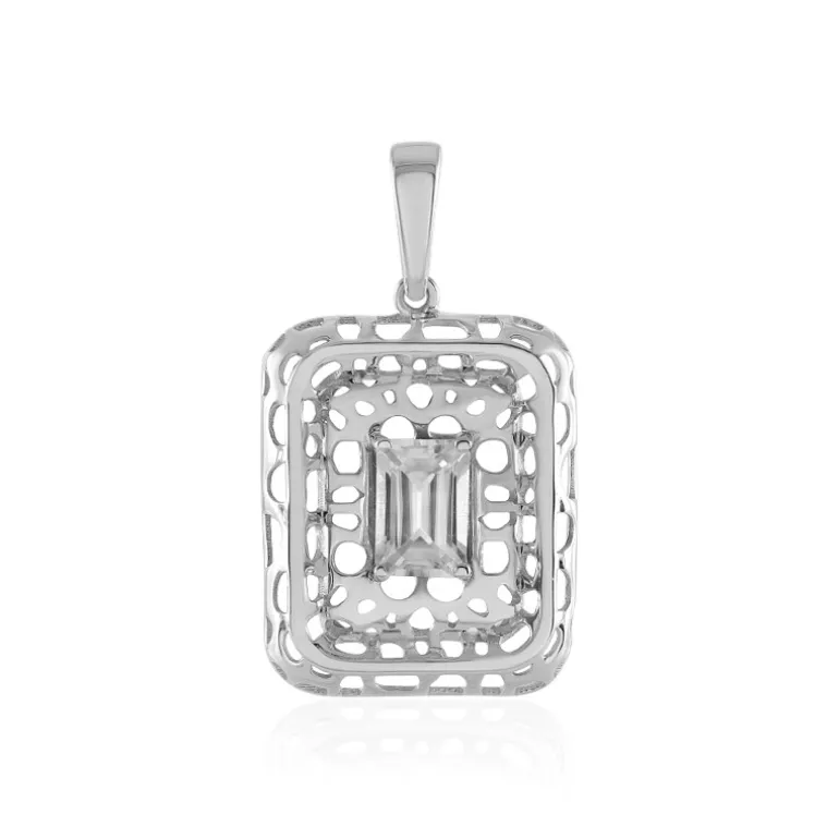 Dieser exquisite Anhänger präsentiert einen kambodschanischen Zirkon im Oktagon-Schliff von 0,77 Karat, gefasst in glänzendem 375er Weißgold. Das verschlungene Design von Ornaments by de Melo verleiht ihm einen modernen Touch. Mit einer Größe von 24×14 mm ist er perfekt geeignet, um jedem Outfit Eleganz zu verleihen, sei es für eine raffinierte Abendveranstaltung oder einen stilvollen Tageslook. Kombinieren Sie ihn mit einer Weißgoldkette, um das Ensemble zu vervollständigen.