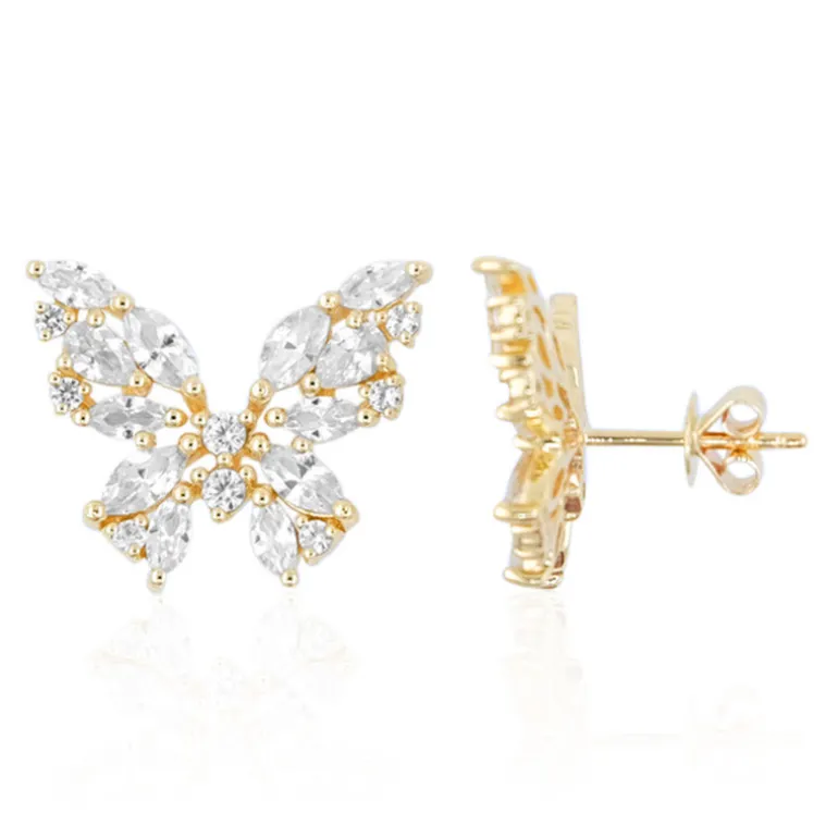 Schicke kambodschanische Zirkon-Schmetterlings-Ohrringe, 9K Gold