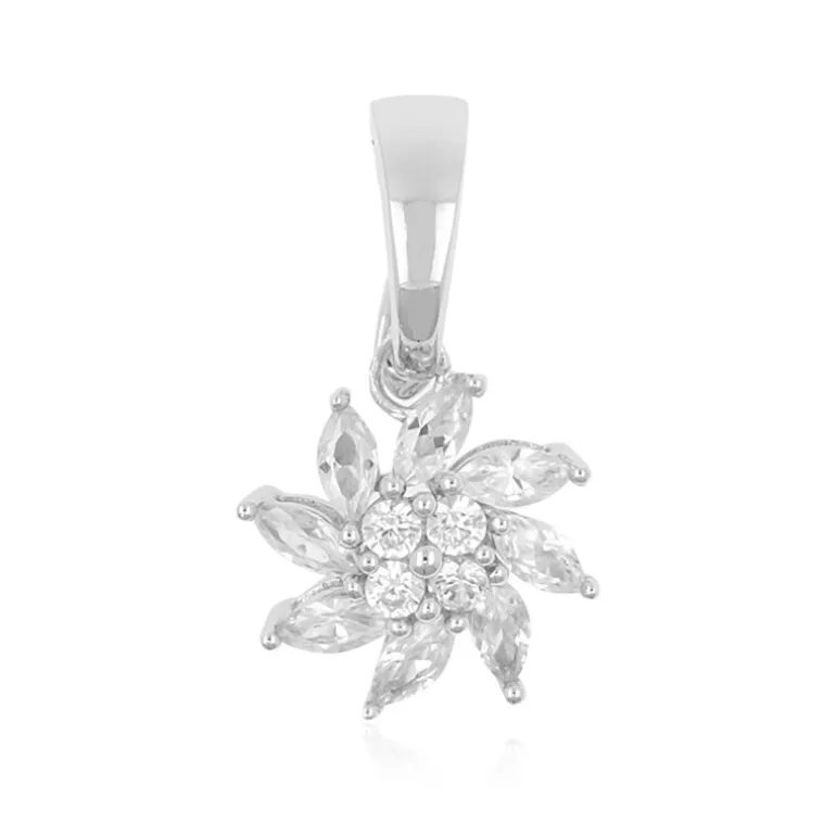 Dieser funkelnde Zirkon-Anhänger aus Kambodscha besticht durch eine zarte Konstellation von Steinen im Marquise- und Rundschliff, die in hochwertiges 925er Sterlingsilber gefasst sind. Die insgesamt 0,9 Karat schweren Steine sind kunstvoll in einem floralen Design angeordnet, das Eleganz und Raffinesse ausstrahlt. Mit einer Größe von 20×12 mm ist dieser Anhänger perfekt geeignet, um sowohl Tages- als auch Abendgarderobe einen Hauch von Glamour zu verleihen. Ideal zum Verschenken oder als schicke Ergänzung Ihrer eigenen Sammlung, verspricht dieser Anhänger ein zeitloses Accessoire zu sein.