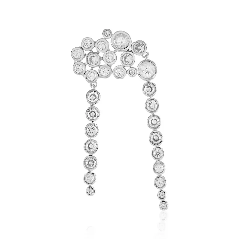 Entdecken Sie die Faszination dieses funkelnden Zirkon-Anhängers aus Kambodscha aus unserer MONOSONO COLLECTION. Er ist eine Symphonie des Glanzes mit 29 Zirkonen im Rundschliff mit einem Gesamtgewicht von 3,993 Karat, die sorgfältig in platiniertes 925er Sterlingsilber gefasst sind. Die schimmernde Anordnung zeugt von Eleganz und bildet ein auffälliges 54×24 mm großes Design, das im Licht tanzt. Dieser Anhänger ist ideal für Abendveranstaltungen und verleiht einem klassischen Kleid oder einer raffinierten Bluse einen raffinierten Touch. Peppen Sie Ihre Accessoire-Kollektion mit diesem exquisiten Stück auf, das Luxus und Anmut verkörpert.