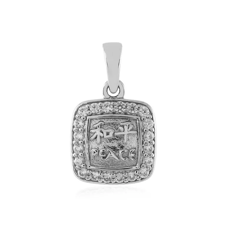 Entdecken Sie die Gelassenheit mit diesem einzigartigen Anhänger, der das universelle Symbol des Friedens in einer schimmernden Anordnung von 20 sorgfältig rund geschliffenen kambodschanischen Zirkonen von insgesamt 0,639 Karat zeigt. Der Anhänger ist aus 925er Sterlingsilber gefertigt und mit einer hochwertigen Platinveredelung versehen, um seinen Glanz und seine Haltbarkeit zu verbessern. Mit einer Größe von 22×13 mm und einem ungefähren Silbergewicht von 2,57 Gramm ist dieses Stück nicht einfach nur Schmuck, sondern ein Statement der Harmonie. Ideal für das tägliche Tragen oder als bedeutungsvolles Geschenk, wird es jedem Ensemble einen Hauch von Ruhe verleihen.