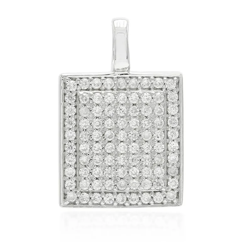 Dieser schicke Anhänger mit kambodschanischem Zirkonpavé glänzt bei jeder Drehung. Dieses meisterhaft in glänzendes 925er Sterlingsilber gefasste Schmuckstück mit einem Gesamtgewicht von 1,507 Karat weist eine quadratische Silhouette auf, die mit 90 runden Zirkonen im Brillantschliff besetzt ist. Mit einem Gewicht von 2,84 g Silber fängt er das Licht ein und verleiht jedem Outfit einen Hauch von Raffinesse. Dieser Anhänger eignet sich sowohl für den eleganten Alltag als auch für besondere Anlässe.