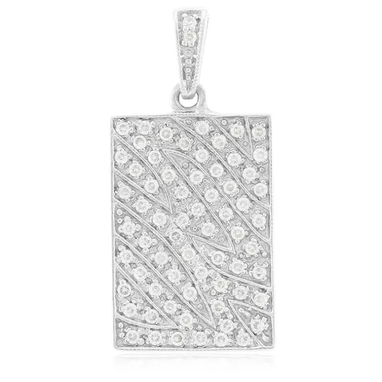 Dieser raffinierte Anhänger aus Sterlingsilber präsentiert 68 strahlende Zirkone aus Kambodscha, die in brillanten runden Formen von insgesamt 0,687 Karat geschliffen sind. Die Zusammensetzung des Anhängers aus 925er Sterlingsilber mit einem Gewicht von etwa 2,55 Gramm bietet einen glänzenden Hintergrund für die Edelsteine. Mit seinen Maßen von 27 x 13 mm verleiht das federartige Muster sowohl formellen als auch legeren Outfits einen Hauch von Eleganz. Ein unverzichtbares Accessoire für jede Schmucksammlung, das bei jeder Gelegenheit zu glänzen verspricht.