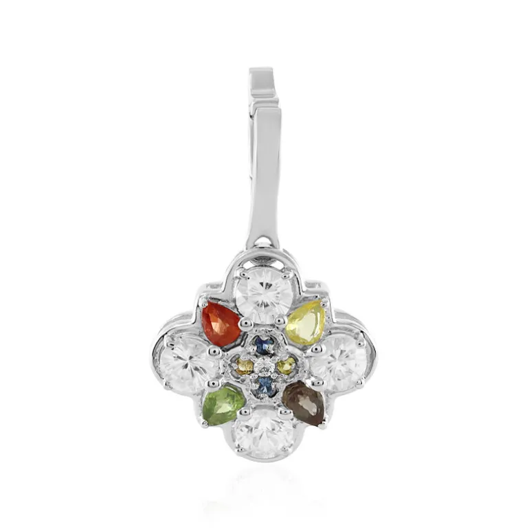 Entdecken Sie mit diesem leuchtenden Anhänger mit funkelnden Zirkonen aus Kambodscha und Saphiren aus Madagaskar einen Hauch von Farbe. Die 2,113-karätigen Zirkone und 0,803-karätigen Saphire sind kunstvoll in einem floralen Motiv angeordnet und verkörpern die Frische der Natur. Der Anhänger aus 925er Sterlingsilber mit glänzendem Platin-Finish verbindet die Eleganz des Brillantschliffs mit dem Charme tropfenförmiger und runder Formen. Er ist vielseitig einsetzbar und wird mit einem Varioclip geliefert, der eine einfache Befestigung ermöglicht. Er ist eine faszinierende Ergänzung für das tägliche Tragen oder für besondere Anlässe und passt sowohl zu legerer als auch zu formeller Kleidung.