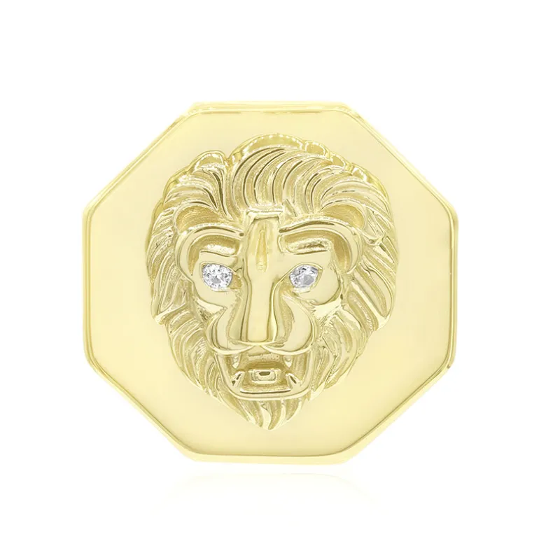 Lassen Sie sich von der Majestät des Dschungels verzaubern mit unserem opulenten Löwen-Anhänger. Gefertigt aus 925er Sterlingsilber mit einer prächtigen Goldplattierung, zeigt dieses Stück zwei funkelnde kambodschanische Zirkone von insgesamt 0,016 Karat, die als Augen des Löwen gefasst sind. Die unverwechselbare sechseckige Form und das naturgetreue Löwenmotiv verleihen ihm eine königliche Ausstrahlung und machen ihn zu einer auffälligen Ergänzung für jedes Ensemble. Kombinieren Sie diesen Anhänger mit einem eleganten schwarzen Kleid für eine Abendveranstaltung oder mit einer weißen Bluse für einen Hauch von Erhabenheit im Alltag. Werten Sie Ihre Schmucksammlung mit einem Symbol für Mut und Stärke auf, das sowohl bedeutungsvoll als auch stilvoll ist.
