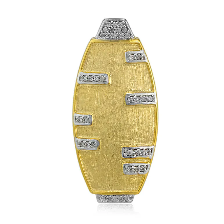 Dieser elegante Anhänger ist ein atemberaubendes Stück aus der MONOSONO COLLECTION mit 39 Zirkonen im Rundschliff von insgesamt 0,281 Karat, die aus den reichen Minen Kambodschas stammen. Jeder Zirkon ist sorgfältig in 925er Sterlingsilber mit einer luxuriösen Goldplattierung gefasst und wiegt etwa 6,04 Gramm. Mit einer Größe von 34 x 16 mm, seiner einzigartigen Form und den schimmernden Edelsteinen ist er ein vielseitiges Accessoire, das sowohl zu legeren als auch zu formellen Anlässen passt. Er eignet sich perfekt, um jedem Outfit einen Hauch von Eleganz zu verleihen und verspricht, das Licht und die Aufmerksamkeit in jedem Raum auf sich zu ziehen.
