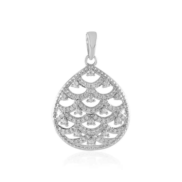 Entdecken Sie die Leuchtkraft des kambodschanischen Zirkons mit diesem Anhänger aus Sterlingsilber mit einem Gesamtkaratgewicht von 0,774. Mit seiner tropfenförmigen Form, die mit mehreren Schichten fein geschliffener Zirkone akzentuiert ist, ist er ein Zeugnis der Eleganz. Jeder Zirkon, der fachmännisch geschliffen wurde, um das Funkeln zu maximieren, ist in 925er Sterlingsilber gefasst, um Langlebigkeit und Glanz zu gewährleisten. Mit seinem filigranen Design zieht dieser Anhänger das Licht und die Aufmerksamkeit auf sich und ist damit ein ideales Accessoire für den Charme des Tages und die Raffinesse des Abends.