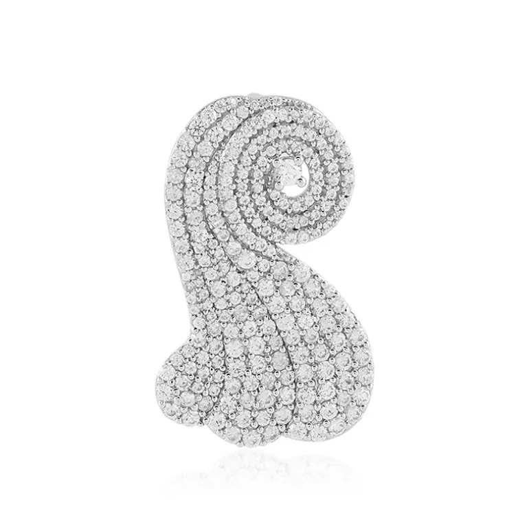 Lassen Sie sich von diesem bezaubernden Anhänger aus platiniertem 925er Sterling Silber verzaubern und begeistern. Er ist mit einer Symphonie von 76 kambodschanischen Zirkonen im Rundschliff mit einem Gesamtgewicht von 1,448 Karat verziert und strahlt Raffinesse aus. Mit einer Größe von 33 x 20 mm ist er dank seines einzigartigen Wirbeldesigns ein vielseitiges Schmuckstück, das sich sowohl für den Alltag als auch für den eleganten Abend eignet. Veredeln Sie eine einfache Bluse oder ein Abendkleid mit diesem schimmernden Accessoire.
