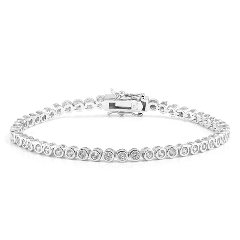 Entdecken Sie die Eleganz dieses Armbands mit Zirkonen aus Tansania, das aus 925er Sterlingsilber gefertigt ist. Mit 49 Zirkonen im Rundschliff und zwei nigerianischen Topasen bietet dieses Stück insgesamt 3,015 Karat Glanz. Dieses Armband eignet sich sowohl für den Alltag als auch für besondere Anlässe. Kombinieren Sie es mit einem schicken Abendkleid oder einer eleganten Bluse, um Ihrem Look einen Hauch von Raffinesse zu verleihen.