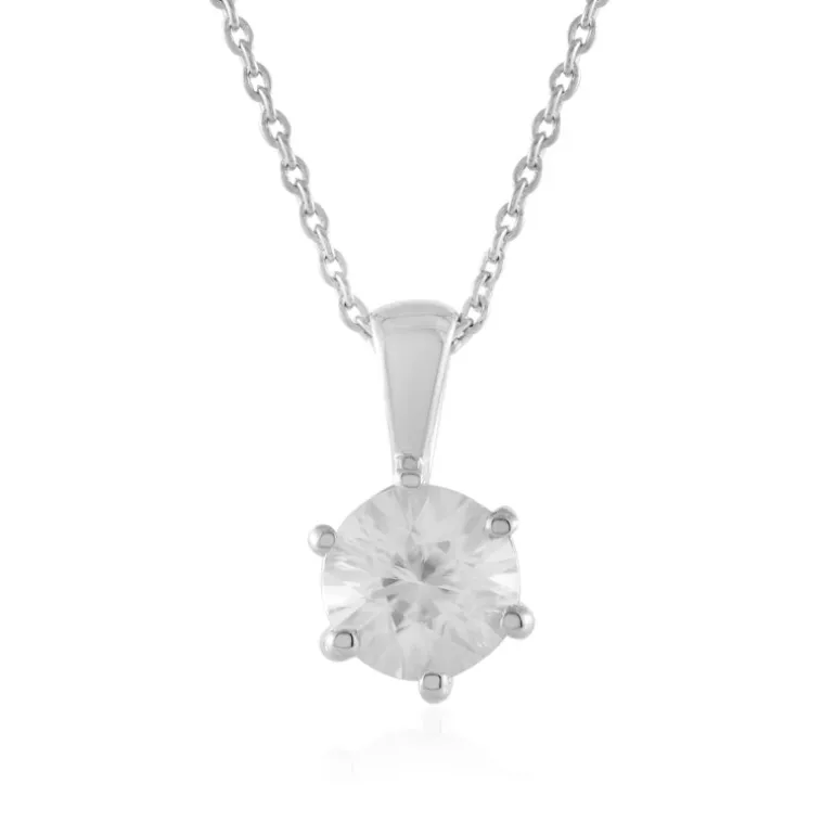 Entdecken Sie die Eleganz dieser exquisiten, plattierten Silberkette mit einem atemberaubenden kambodschanischen Zirkon von 1,621 Karat im Brillantrundschliff. Der schimmernde Zirkon-Anhänger misst 14×8 mm und ist perfekt mit einer Sterlingsilberkette kombiniert, die von 40,5 bis 45,5 cm verstellbar ist. Diese Halskette eignet sich sowohl für legere als auch für formelle Anlässe und wertet mit ihrem zeitlosen Funkeln mühelos jedes Ensemble auf.