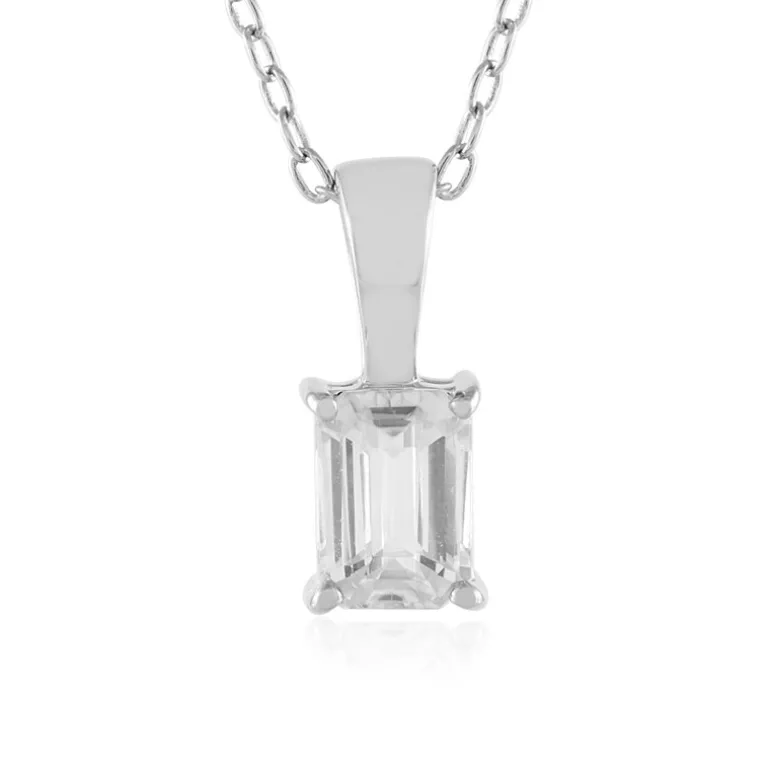 Entdecken Sie die Eleganz dieser Halskette mit kambodschanischem Zirkon. Der raffinierte achteckige Zirkon im Stufenschliff mit insgesamt 1,374 Karat glänzt wunderschön in seiner Fassung aus platiniertem 925er Sterlingsilber. Diese Halskette ist sowohl für legere als auch für formelle Anlässe geeignet und lässt sich mit jedem Ensemble kombinieren. Die verstellbare Kette sorgt für eine bequeme Passform und macht sie zu einem idealen Geschenk für eine besondere Person.