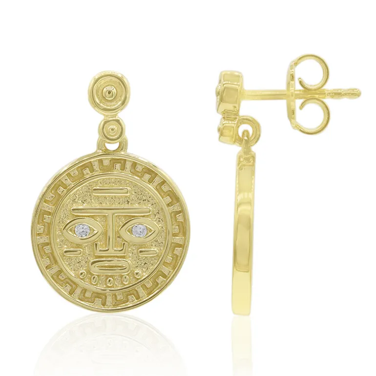 Diese Ohrringe aus vergoldetem 925er Sterling Silber sind mit kambodschanischen Zirkon-Edelsteinen von insgesamt 0,06ct besetzt. Die rund geschliffenen Zirkone funkeln dezent in dem 22 mm großen Medaillon, das mit seinen filigranen Details das Auge fesselt. Diese Ohrringe mit einem Gewicht von ca. 4,67 g sind perfekt geeignet, um sowohl Tages- als auch Abendoutfits einen Hauch von Eleganz zu verleihen. Ihr einzigartiges Muster macht sie zu einem auffälligen Accessoire für jede Gelegenheit, die einen goldenen Glanz erfordert.