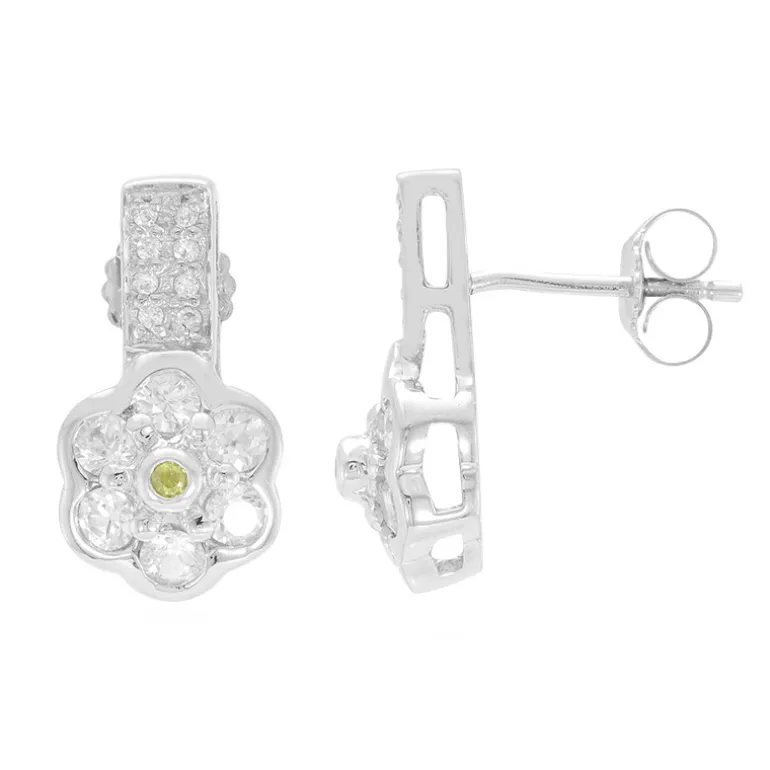 Entdecken Sie das Funkeln dieser Ohrringe aus Sterlingsilber, die mit einem Cluster aus brillanten kambodschanischen Zirkonen von insgesamt 1,355 Karat besetzt sind, die von seltenen Capelinha Sphene akzentuiert werden. Das florale Muster verleiht den Ohrringen einen Hauch von naturinspirierter Eleganz, während das glänzende 925er Sterlingsilber die Strahlkraft der Steine noch verstärkt. Diese Ohrringe sind ein vielseitiges Accessoire, das sich perfekt eignet, um Ihrer Alltagskleidung einen Hauch von Raffinesse zu verleihen oder ein Abendensemble zu vervollständigen.