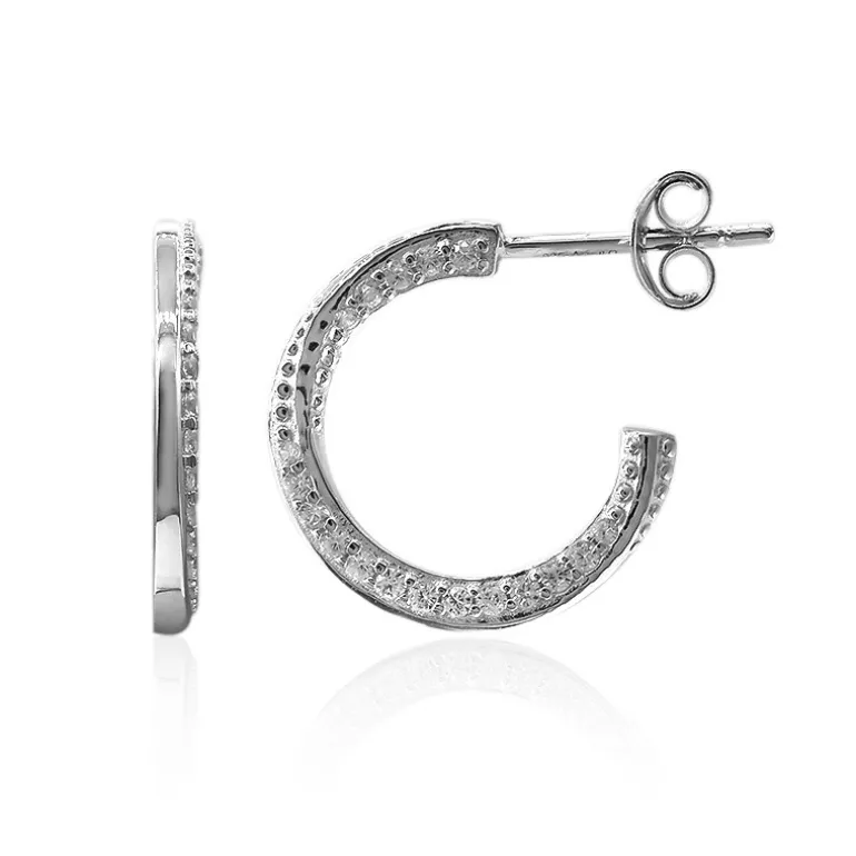 Entdecken Sie das Funkeln unserer tansanischen Zirkon-Sterlingsilber-Ohrringe, wo Eleganz auf zeitloses Design trifft. Diese Ohrringe bestehen aus 36 Zirkonen im Rundschliff mit insgesamt 0,346 Karat, gefasst in poliertem 925er Sterlingsilber mit einem ungefähren Metallgewicht von 1,78 Gramm. Diese 16 mm großen Ohrringe eignen sich perfekt für den Tag und den Abend und werden zu Ihrem Lieblingsaccessoire, um jedem Ensemble einen Hauch von Glamour zu verleihen. Kombinieren Sie sie mit Ihrem Lieblings-Büro-Outfit oder einem schicken Abendkleid für einen mühelos eleganten Look.