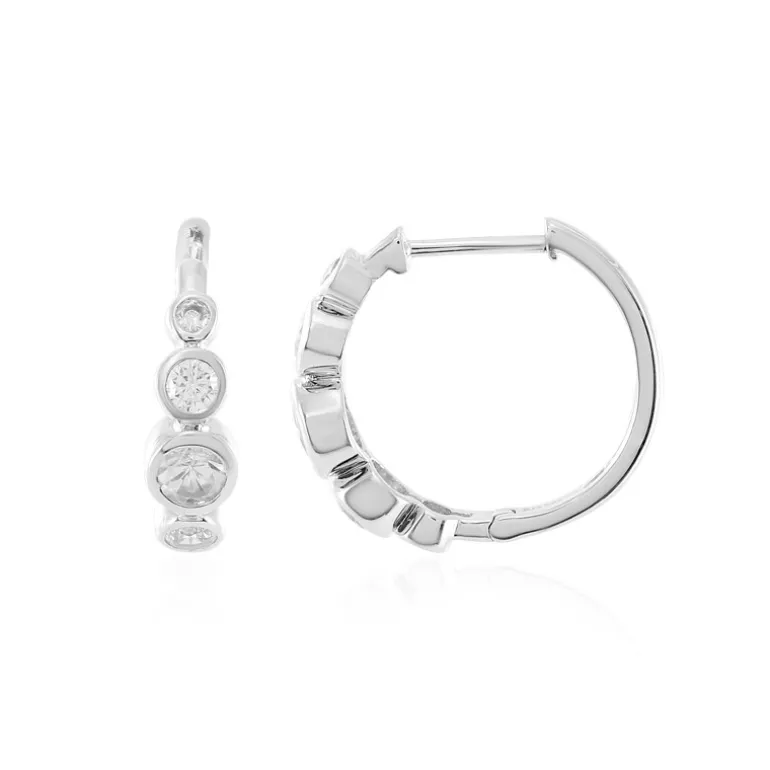Diese Ohrringe aus Sterlingsilber zeigen die schimmernde Schönheit kambodschanischer Zirkone mit insgesamt 1,512 Karat. Sie sind aus 925er Sterlingsilber gefertigt und zeigen eine Reihe von Zirkonen im Rundschliff, die in ihrer Größe abnehmen, um einen eleganten Farbverlauf zu erzeugen. Sie sind perfekt geeignet, um sowohl tagsüber als auch abends zu glänzen, und ihr sicherer Verschluss sorgt dafür, dass sie bei jeder Gelegenheit an ihrem Platz bleiben.