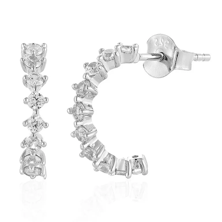 Entdecken Sie das Funkeln dieser atemberaubenden 925er Sterling Silber Ohrringe, die mit 20 strahlenden kambodschanischen Zirkonen verziert sind. Jeder Zirkon im Rundschliff, der sorgfältig entlang des eleganten Reifs gefasst ist, trägt zum Gesamtgewicht von 0,9ct bei und verleiht Ihrer Kleidung einen Hauch von Leuchtkraft. Mit einer perfekten Größe von 15 mm sind diese Ohrringe dezent genug für den Tag und raffiniert genug für Abendveranstaltungen. Ergänzen Sie mit diesem vielseitigen Paar Ihre lässig-schicken oder eleganten Ensembles.