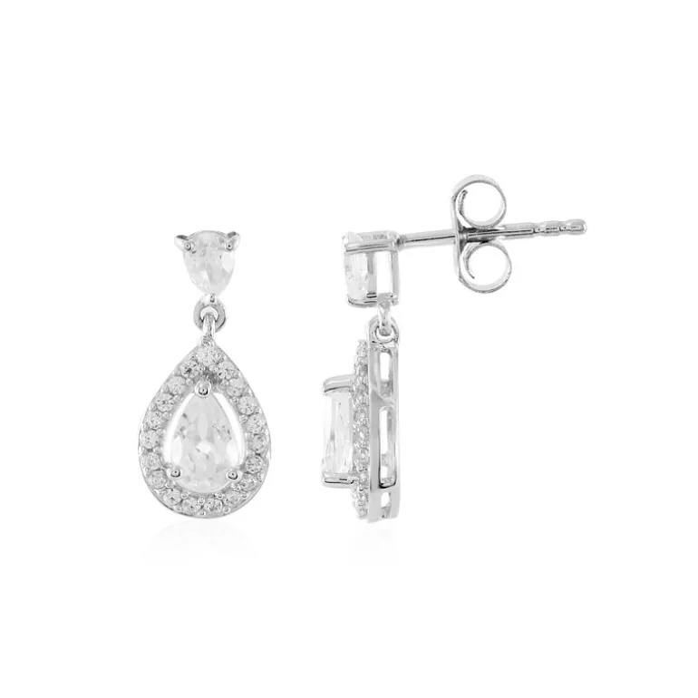 Entdecken Sie die Faszination unserer raffinierten Zirkon-Silberohrringe aus Kambodscha mit einem Gesamtgewicht von 1,90 Karat. Jeder Ohrring ist eine harmonische Komposition aus Zirkonen im Tropfen- und Rundschliff, die in hochwertigem 925er Sterlingsilber gefasst sind und ein klassisches Design mit einem modernen Twist ergeben. Der Glanz des Silbers ergänzt die Klarheit des Zirkons und macht diese Ohrringe sowohl für den Tag als auch für den Abend geeignet. Kombinieren Sie sie mit einer eleganten Hochsteckfrisur, damit ihr Funkeln bei jeder Gelegenheit ins Licht fällt.