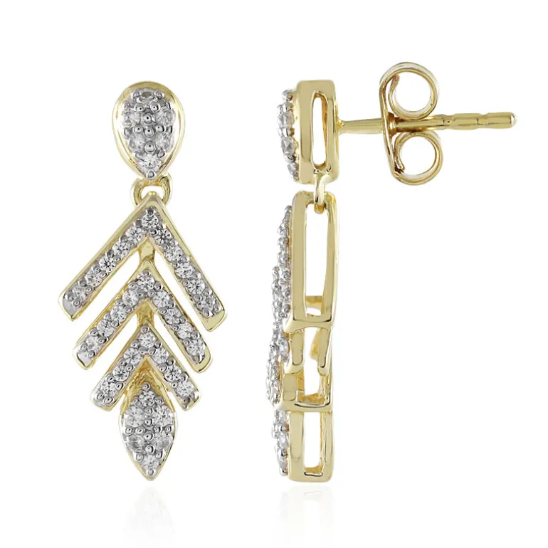 Unsere atemberaubenden Tropfenohrringe sind eine Symphonie aus 78 funkelnden Zirkonen aus Kambodscha, die in glänzendes vergoldetes 925er Sterlingsilber gefasst sind. Mit einem Gewicht von 0,603 Karat haben diese Ohrringe einen präzisen Rundschliff, der die Brillanz maximiert. Die Länge von 23 mm und das Chevron-Muster erzeugen eine Kaskade schimmernden Lichts und machen sie zu einem verführerischen Accessoire für Tages- und Abendgarderobe. Diese Ohrringe sind ideal, um Ihrem Outfit einen Hauch von Eleganz zu verleihen, und werden Sie auf jeder Soiree oder einem beruflichen Treffen verzaubern.