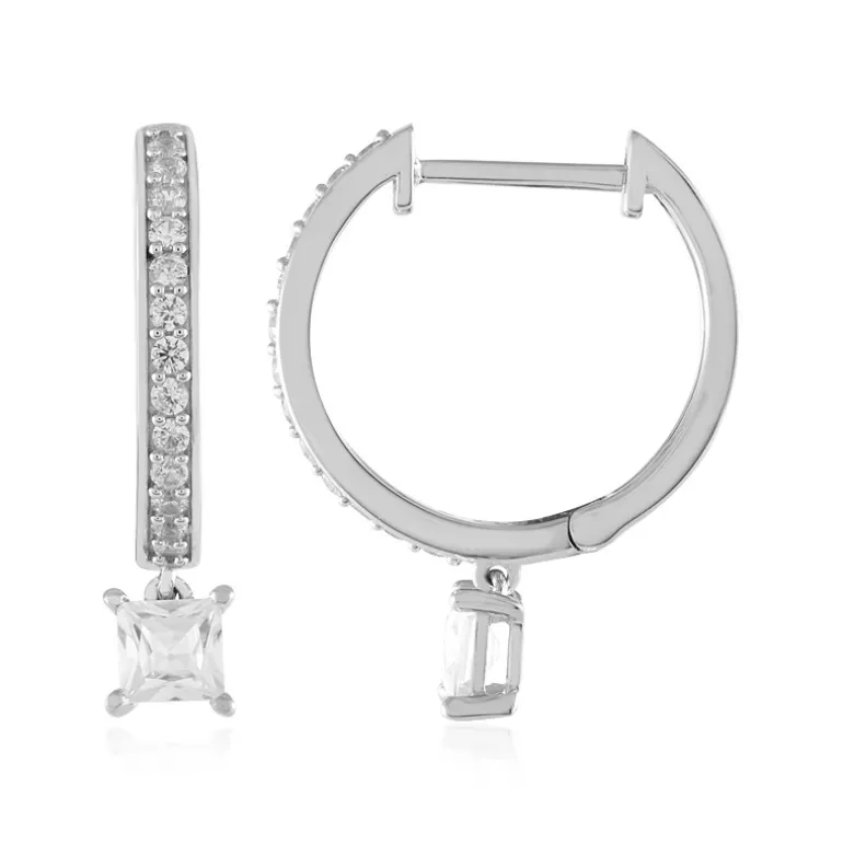 Lassen Sie Ihren Look mit diesen exquisiten Zirkon-Ohrringen aus Silber erstrahlen. Mit zwei kambodschanischen Zirkonen im Prinzess-Schliff und 26 Steinen im Rundschliff bilden sie einen glanzvollen Auftritt. Diese 17 mm großen Ohrringe aus 925er Sterlingsilber mit Platin-Finish für zeitlose Eleganz sind perfekt, um jedem Outfit Raffinesse zu verleihen, sei es für eine formelle Veranstaltung oder einen eleganten Abend.