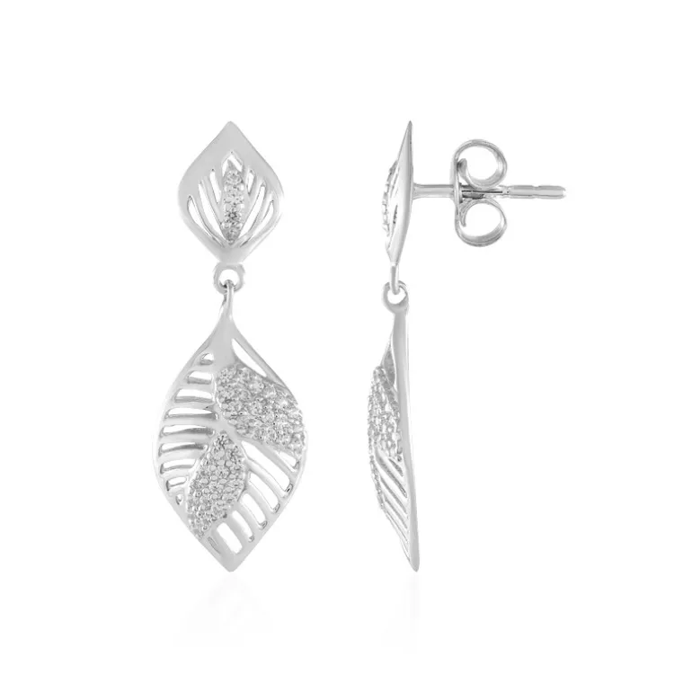 Lassen Sie sich von der Eleganz der Natur verzaubern mit diesen Zirkonblatt-Ohrringen aus Sterlingsilber. Diese exquisiten Ohrringe sind mit 78 funkelnden kambodschanischen Zirkonen von insgesamt 0,513 Karat besetzt und verfügen über ein zartes Blattdesign, das sie perfekt für jede Gelegenheit macht. Sie eignen sich sowohl für den Tag als auch für den Abend. Kombinieren Sie sie mit einem fließenden Kleid oder einer eleganten Bluse für einen ebenso raffinierten wie bezaubernden Look.
