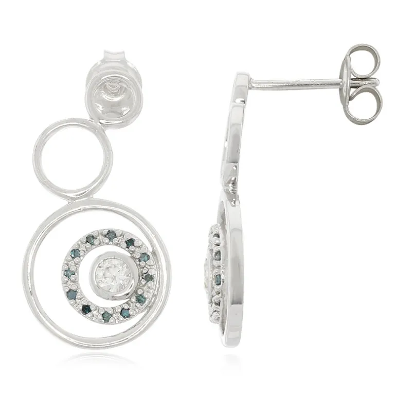 Diese Ohrringe aus Sterlingsilber bestechen durch ihr Zusammenspiel von 0,34 Karat strahlender kambodschanischer Zirkone, die durch 0,10 Karat königsblauer Diamanten ergänzt werden. Die aus 925er Sterlingsilber gefertigten Ohrringe mit einem Gesamtgewicht von 0,44 Karat sind 24,5 mm groß und strahlen Raffinesse aus. Sie passen perfekt zur Abendgarderobe und versprechen, bei besonderen Anlässen zu glänzen oder als wertvolles Geschenk zu dienen.