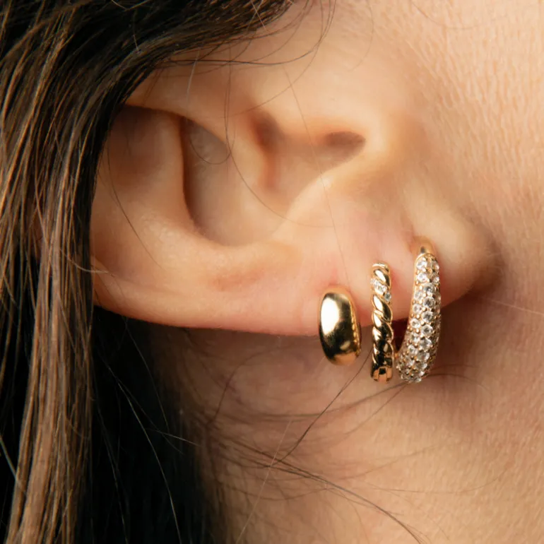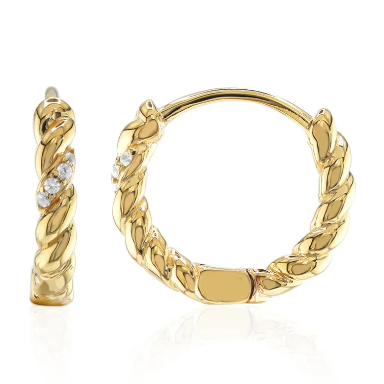 Entdecken Sie die Faszination dieser auffälligen vergoldeten 925er Sterlingsilber-Ohrringe, die jeweils mit einem Trio funkelnder tansanischer Zirkone von insgesamt 0,05 Karat besetzt sind. Mit einem Gewicht von ca. 2,52 Gramm strahlen diese Ohrringe Eleganz mit einem modernen Touch aus und sind sowohl für den Tag als auch für Abendveranstaltungen geeignet. Kombinieren Sie sie mit einer eleganten Hochsteckfrisur, um ihren Glanz zur Geltung zu bringen, was sie zu einer vielseitigen Ergänzung jeder Schmucksammlung macht.