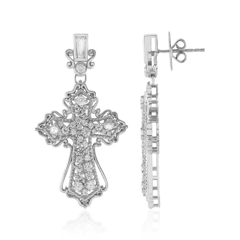 Unterstreichen Sie Ihre Eleganz mit diesen luxuriösen kreuzförmigen Ohrringen von Dallas Prince Designs. Sie sind aus 925er Sterlingsilber gefertigt und mit 3,218 Zirkonen aus Kambodscha besetzt. Perfekt, um formellen Anlässen Glanz zu verleihen oder einen schicken Abendlook zu unterstreichen. Kombinieren Sie sie mit einem klassischen schwarzen Kleid für ein unvergessliches Styling.