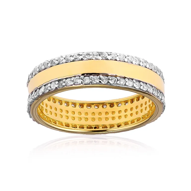 Schicker Zirkon Zweifarbiger Silberring, vergoldet