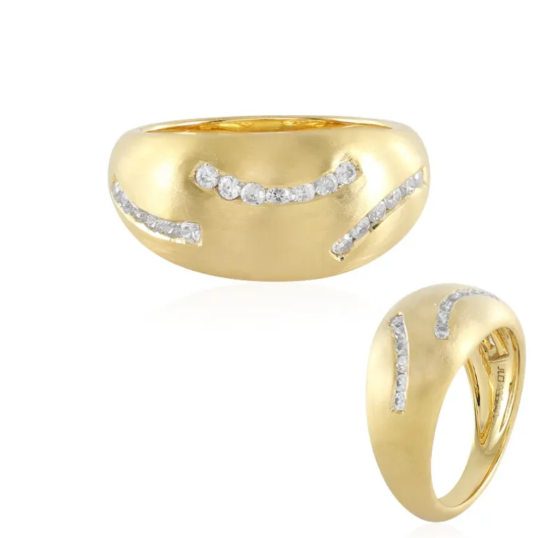 Dieser bezaubernde Ring aus vergoldetem 925er Sterlingsilber bietet eine einzigartige Mischung aus Eleganz und Glanz. Eine Konstellation von 19 sorgfältig geschliffenen kambodschanischen Zirkonen von insgesamt 0,308 Karat glänzt in ihren runden Fassungen. Sein kühnes, modernes Design mit einem ungefähren Gewicht von 2,88 g Silber ist ideal für alle, die auffällige Stücke lieben. Er eignet sich perfekt, um jedem Outfit einen Hauch von Glamour zu verleihen, sei es auf einer Dinnerparty oder bei einem eleganten Ausgehabend.