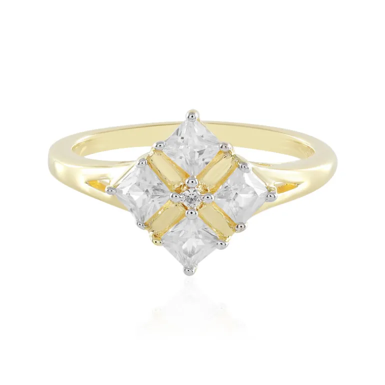 Entdecken Sie die Faszination des kambodschanischen Zirkons mit unserem vergoldeten Ring aus Sterlingsilber. Mit einem atemberaubenden quadratischen Zirkon im Prinzessschliff als Herzstück, ergänzt durch weitere Zirkon-Akzente, funkelt dieser Ring mit Raffinesse. Sein Gesamtgewicht von 0,774 ct ist geschmackvoll in einem modernen Design angeordnet, das das Licht aus jedem Winkel einfängt. Kombinieren Sie dieses schicke Accessoire mit Ihrem Lieblingscocktailkleid für einen Abend oder verleihen Sie Ihrer Alltagskleidung einen Hauch von Eleganz. Dieser Ring ist eine perfekte Mischung aus modernem Charme und zeitloser Schönheit und wird jeden Schmuckliebhaber begeistern.