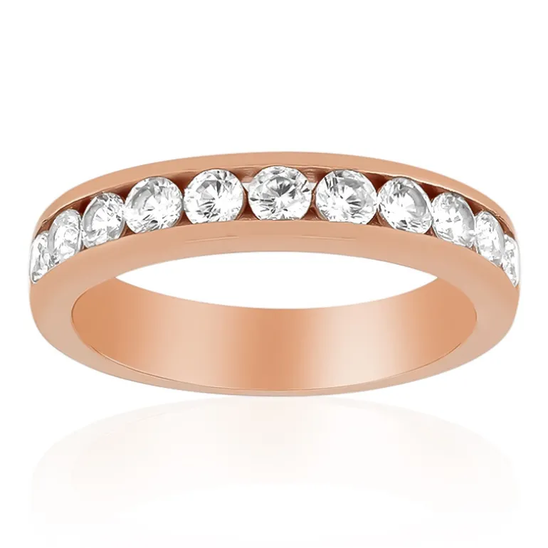 Entdecken Sie die Anziehungskraft dieses prächtigen Rings mit einer Reihe tansanischer Zirkone im Präzisionsschliff von insgesamt 0,99 Karat, eingefasst in ein wunderschönes Band aus rosévergoldetem 925er Sterlingsilber. Die 2,5 mm großen, runden Zirkonsteine fangen das Licht ein und bilden ein funkelndes Ensemble, das sowohl klassisch als auch modern ist. Schmücken Sie Ihre Hand mit diesem Schmuckstück für einen zusätzlichen Hauch von Raffinesse bei Abendveranstaltungen oder machen Sie es zu einer stattlichen Ergänzung für Ihren täglichen Gebrauch. Dieser charmante Ring zeugt von Eleganz und raffiniertem Geschmack und ist ideal für modebewusste Menschen.