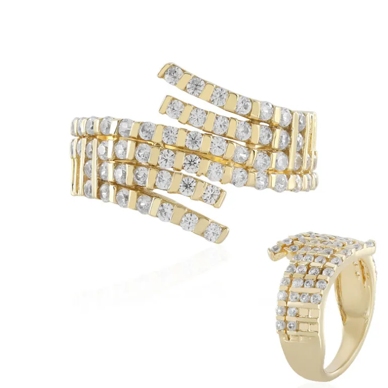 Dieser schicke Ring mit 58 kambodschanischen Zirkonen im Rundschliff mit einem Gesamtgewicht von 0,679 Karat ist eine faszinierende Verschmelzung von Funkeln und modernem Design. Der Ring ist aus vergoldetem 925er Sterlingsilber gefertigt und besticht durch seine luxuriöse Ästhetik. Dieser Ring ist ideal für elegante Abende oder zur Aufwertung Ihrer Geschäftskleidung und wird das Herzstück Ihrer Accessoire-Kollektion sein.