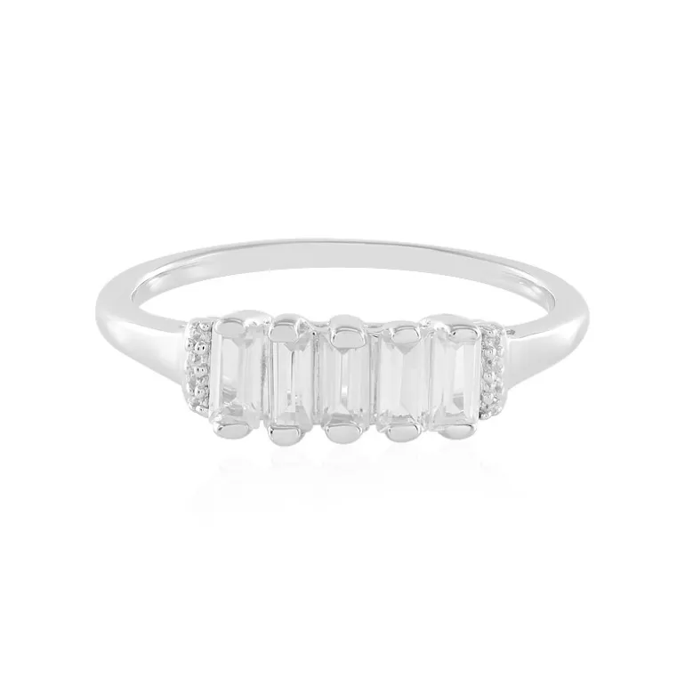 Dieser Ring aus Sterlingsilber ist eine elegante Ergänzung für jede Schmucksammlung. Er präsentiert eine Reihe von strahlenden kambodschanischen Zirkonen mit einem Gesamtgewicht von 1,494 Karat. Jeder Edelstein im Baguetteschliff glänzt durch seine Klarheit, flankiert von zarten Akzenten im Rundschliff und verkörpert Eleganz in einem modernen Design. Der Ring ist aus 925er Sterlingsilber gefertigt und bietet sowohl Langlebigkeit als auch raffinierten Geschmack. Sein vielseitiger Stil macht ihn zu einem idealen Accessoire sowohl für den Alltag als auch für besondere Anlässe.