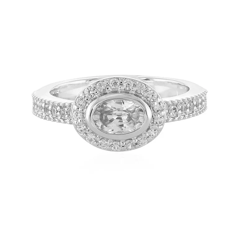 Dieser atemberaubende Ring zeigt einen eleganten ovalen Zirkon aus Kambodscha in der Mitte, umgeben von einem glitzernden Halo aus runden Zirkonen. Der sorgfältig aus 925er Sterlingsilber gefertigte Ring weist ein Gesamtgewicht von 1,07 Karat auf. Das Spiel des Lichts auf den fein facettierten Steinen bietet ein faszinierendes Schauspiel. Dieser Ring ist perfekt, um jedem Outfit einen Hauch von Raffinesse zu verleihen, sei es für einen legeren Brunch oder eine formelle Abendgala.