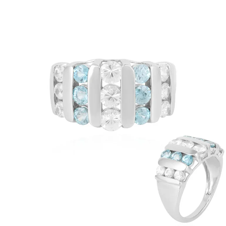 Entdecken Sie die Faszination unseres Silberrings mit Zirkonen aus Tansania und Kambodscha, bei dem Eleganz auf modernes Design trifft. Geschmückt mit einer schillernden Reihe von Zirkonen im Rundschliff von insgesamt 3,353 Karat, funkelt dieser Ring aus jedem Winkel. Die blauen und kristallklaren Zirkonsteine sind sorgfältig in 925er Sterlingsilber mit Platinplattierung gefasst, was sowohl Schönheit als auch Haltbarkeit garantiert. Stellen Sie sich vor, wie dieser Ring Ihre Abendgarderobe akzentuiert oder Ihren Alltagslook mit einem Hauch von Raffinesse ergänzt. Er ist eine tadellose Wahl für alle, die einzigartigen Schmuck mit globalem Charme lieben.