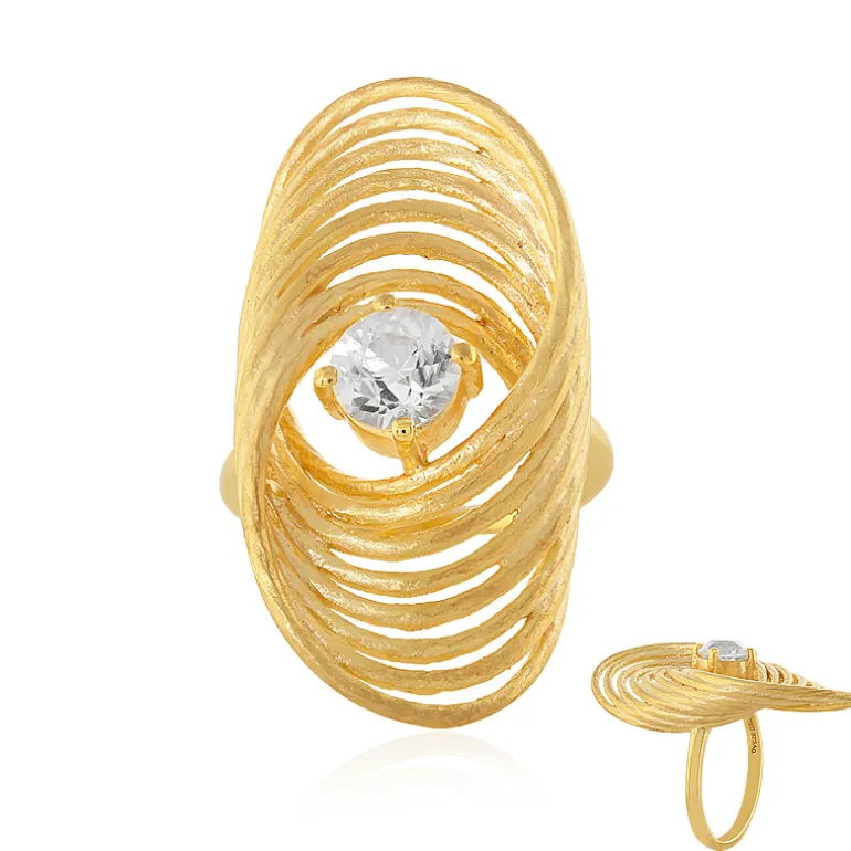 Entdecken Sie den Glanz des kambodschanischen Zirkons mit diesem bezaubernden Ring aus vergoldetem 925er Sterlingsilber. Ein 1,147 Karat großer Zirkon im Rundschliff funkelt inmitten des einzigartigen 24×18 mm großen spiralförmigen Designs, das an goldenen Sand erinnert. Perfekt, um Ihrem Alltag einen Hauch von Eleganz zu verleihen oder als krönendes Schmuckstück für einen besonderen Anlass. Seine warmen Farbtöne und seine handwerkliche Qualität machen ihn zu einem unverzichtbaren Bestandteil jeder Schmucksammlung.