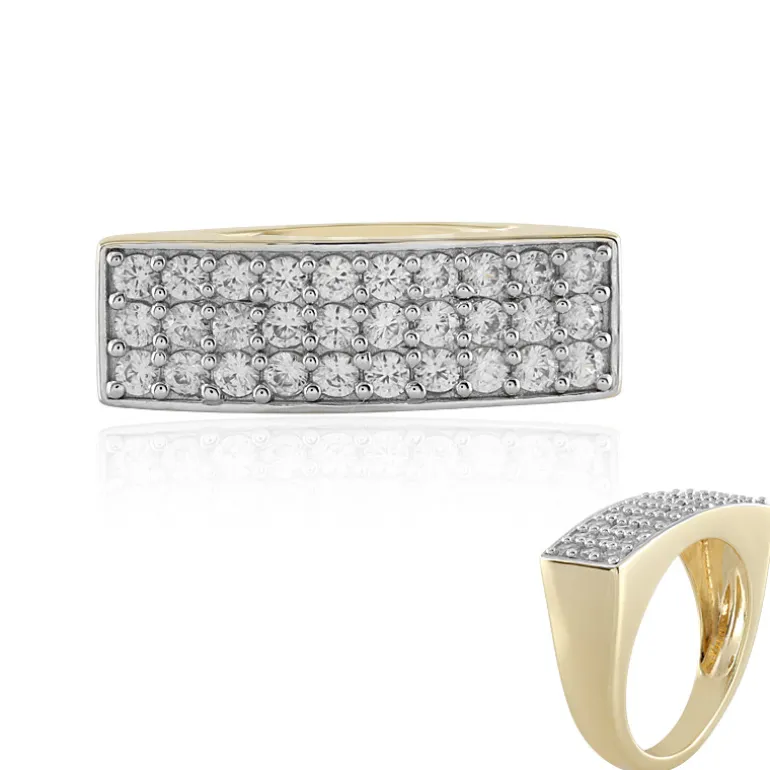 Dieser strahlende Ring mit 30 funkelnden Zirkonen im Rundschliff aus Kambodscha mit einem Gesamtgewicht von 1,35 Karat, gefasst in reich vergoldetem 925er Sterlingsilber, ist ein Meisterwerk der Handwerkskunst. Das üppige Arrangement verleiht jedem Outfit einen Hauch von Glamour und macht ihn zu einer tadellosen Wahl für besondere Anlässe oder einfach, um Ihrem Alltagslook einen Hauch von Raffinesse zu verleihen. Das Gewicht von 3,56 g sorgt für einen angenehmen Tragekomfort und verkörpert sowohl Eleganz als auch Beständigkeit. Perfekt für alle, die eine Mischung aus modernem Design und traditionellem Charme schätzen.