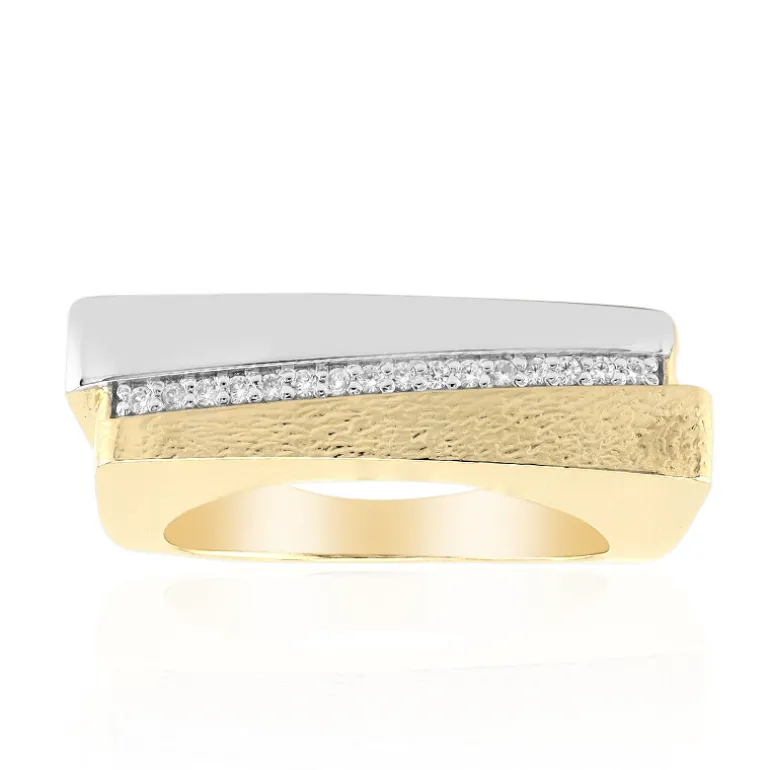 Dieser zeitgenössische Ring aus vergoldetem 925er Sterlingsilber aus der MONOSONO COLLECTION ist ein Zeugnis moderner Eleganz. Er ist mit 16 strahlenden Zirkonen aus den faszinierenden Ländern Kambodschas verziert, jeder Edelstein sorgfältig rund geschliffen mit einem Gesamtkaratgewicht von 0,112 ct. Die harmonische Mischung aus goldenen und silbernen Farbtönen mit einem Gewicht von ca. 5,43 g macht dieses Schmuckstück zu einer vielseitigen Ergänzung für jede Garderobe, perfekt für die Anmut am Tag und den Glamour am Abend.