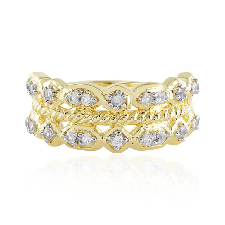 Beleuchten Sie Ihren Look mit diesem strahlenden Ring aus vergoldetem Sterlingsilber, der ein Gitter aus funkelnden kambodschanischen Zirkonen von insgesamt 0,441 Karat präsentiert. Das filigrane Design mit 22 sorgfältig geschliffenen Zirkonen verleiht sowohl im Alltag als auch bei besonderen Anlässen einen Hauch von Glamour. Ergänzen Sie dieses Schmuckstück mit eleganten goldfarbenen Accessoires, um einen kohärenten und raffinierten Stil zu kreieren.