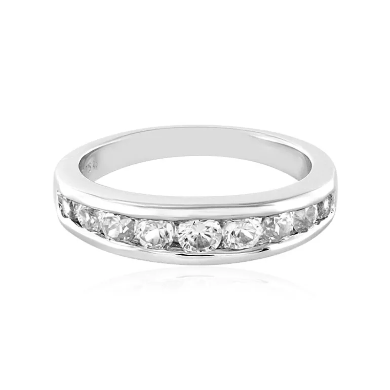 Entdecken Sie die strahlende Anziehungskraft dieses atemberaubenden Rings mit einem fesselnden Ensemble aus kambodschanischen Zirkonen von insgesamt 0,985 Karat. Die rund geschliffenen Edelsteine sind sorgfältig in ein Band aus 925er Sterlingsilber gefasst, das mit einer hochwertigen Platinbeschichtung für dauerhaften Glanz versehen ist. Sein schlichtes Design macht ihn zu einem idealen Accessoire für den Tag und den Abend, das mühelos jedes Outfit ergänzt. Perfekt für alle, die ein ausgewogenes Verhältnis von Eleganz und Glanz in ihrer Schmucksammlung schätzen.
