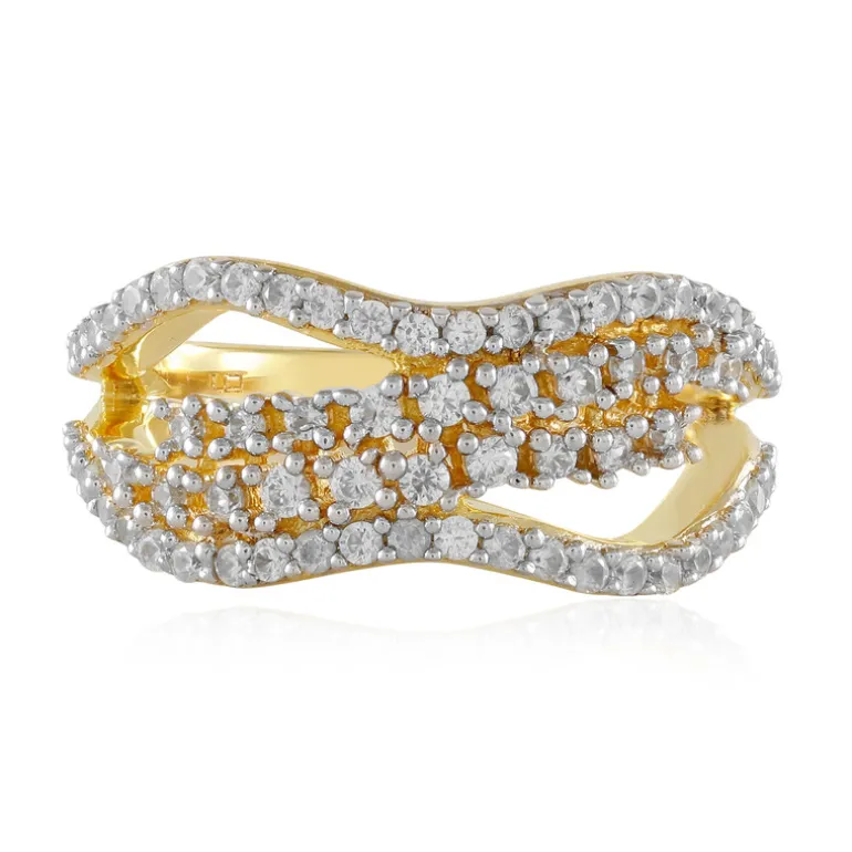Entdecken Sie die Eleganz dieses atemberaubenden Rings, der mit kambodschanischen Zirkonsteinen mit einem Gesamtkaratgewicht von 0,9 verziert ist. Dieses Schmuckstück aus vergoldetem 925er Sterlingsilber verbindet klassische Schönheit mit modernem Charme. Es eignet sich perfekt für besondere Anlässe oder für den Alltag und passt sowohl zu formellen als auch zu legeren Outfits. Eine schicke Ergänzung für jede Schmucksammlung.