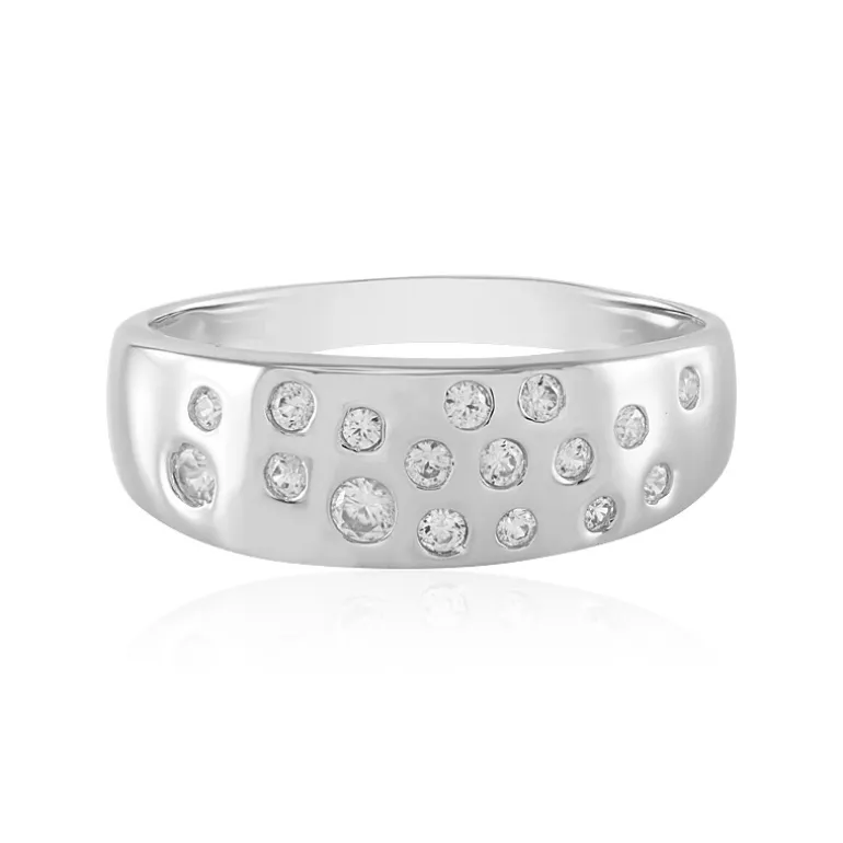 Dieser Ring aus poliertem, platiniertem 925er Sterlingsilber ist mit einer Konstellation aus kambodschanischen Zirkonen im Rundschliff von insgesamt 0,604 Karat verziert. Die schillernden Edelsteine, die in einem harmonischen Muster gefasst sind, verleihen dem klassischen Design eine moderne Note und machen ihn zu einem vielseitigen Accessoire für den Alltag und besondere Anlässe. Das durchdachte Design sorgt dafür, dass er sowohl zu legeren als auch zu formellen Anlässen passt. Dieses Schmuckstück strahlt Raffinesse aus und verleiht jedem Outfit genau die richtige Portion Glanz.