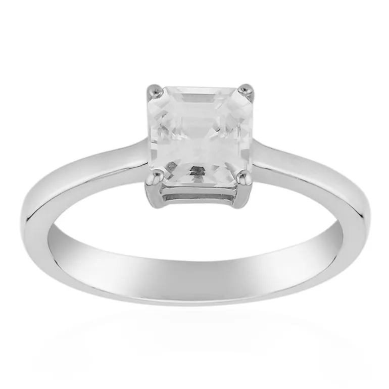 Entdecken Sie die Anziehungskraft dieses faszinierenden Rings mit einem 1,17-karätigen Zirkon aus Tansania im achteckigen Smaragdschliff, der perfekt auf einem glänzenden Band aus platiniertem 925er Sterling Silber sitzt. Das minimalistische Design unterstreicht die kristalline Klarheit des Edelsteins und bietet eine vielseitige Eleganz, die sich sowohl für legere als auch für formelle Anlässe eignet. Sein beträchtliches Karatgewicht sorgt für eine auffällige und raffinierte Präsenz am Finger und macht diesen Ring zu einer reizvollen Ergänzung für jede Sammlung.