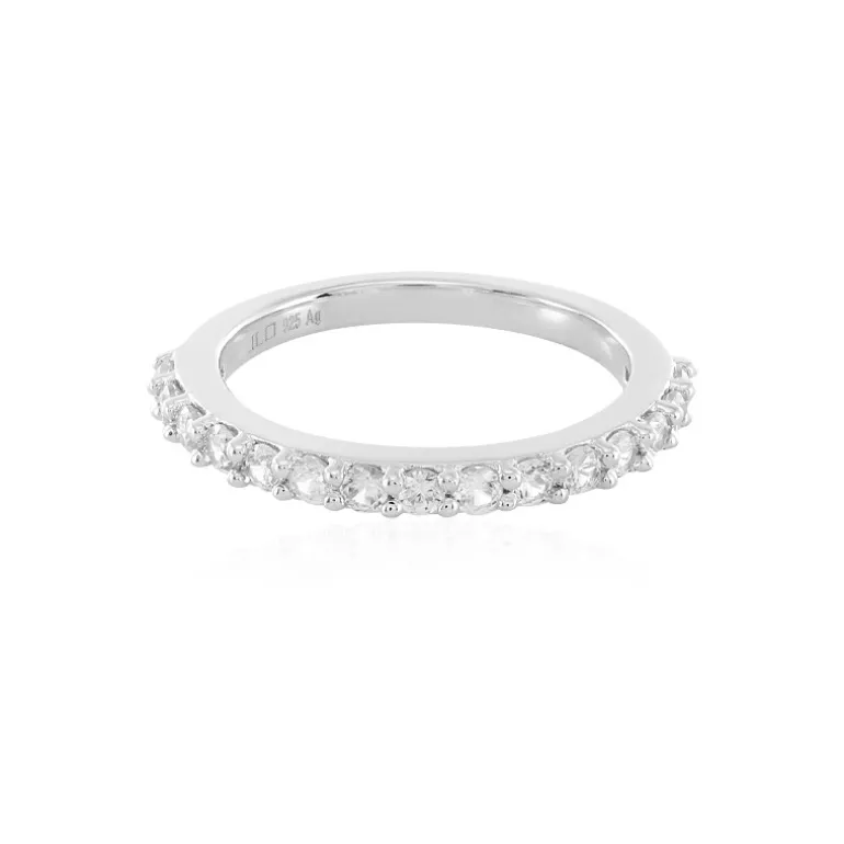 Entdecken Sie das zeitlose Funkeln dieses Rings aus 925er Sterlingsilber, der für zusätzlichen Glanz plattiert wurde. Dieses Schmuckstück umschließt den Finger mit einer Reihe von 15 Zirkonen im Rundschliff aus Kambodscha mit einem Gesamtkaratgewicht von 0,754 ct. und einer Größe von ca. 2 mm. Das schlanke Band mit einem Gewicht von etwa 1,71 g bietet einen eleganten Touch für das tägliche Tragen oder besondere Anlässe. Kombinieren Sie diesen strahlenden Ring mit Ihrer Lieblingsabendgarderobe, um Ihren Stil mit Raffinesse zu unterstreichen.