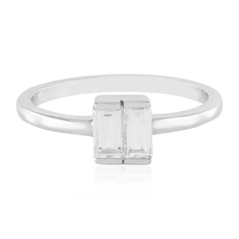 Dieser exquisite Silberring zeigt zwei kambodschanische Zirkone, die elegant in einer Baguettestufenform geschliffen sind und insgesamt 0,917 Karat wiegen. Gefertigt aus 925er Sterlingsilber mit einer luxuriösen Platinbeschichtung, ist dieser Ring sowohl schick als auch raffiniert. Er ist perfekt, um jedem Outfit einen Hauch von Eleganz zu verleihen, und passt sowohl zu legeren als auch zu formellen Anlässen. Ideal für besondere Anlässe oder für den täglichen Glanz.