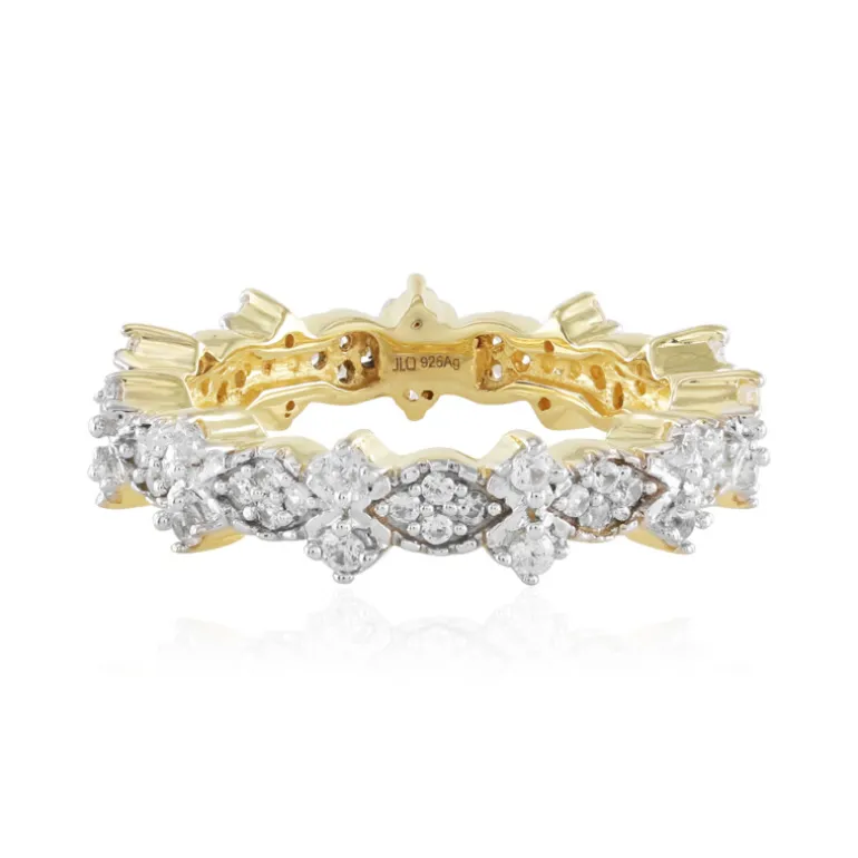 Entdecken Sie die bezaubernde Anziehungskraft dieses prächtigen Rings mit einer Reihe strahlender Zirkoniasteine, die sorgfältig in ein vergoldetes Silberband gefasst sind. Das verschlungene Design besteht aus funkelnden Steinen, die ein Gefühl von zeitloser Eleganz vermitteln. Dieses außergewöhnliche Schmuckstück mit einem Durchmesser von 22 mm passt zu jedem Outfit, von legerem Chic bis hin zu glamouröser Abendgarderobe. Seine Vielseitigkeit macht ihn zu einem idealen Geschenk oder zu einem neuen Eckpfeiler in Ihrer Schmucksammlung.